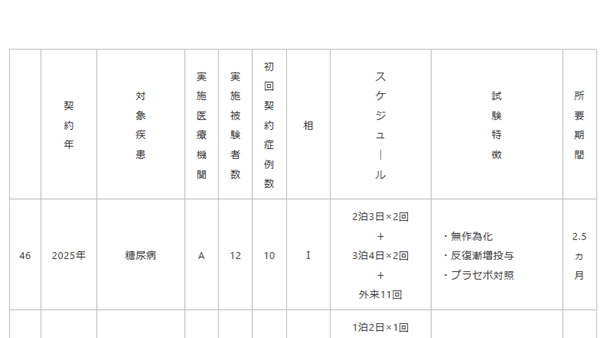 | 1 | 2020年 | 脂質異常症 | 288 | 大阪治験病院、OCROMクリニック、ToCROMクリニック |