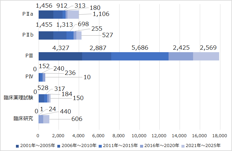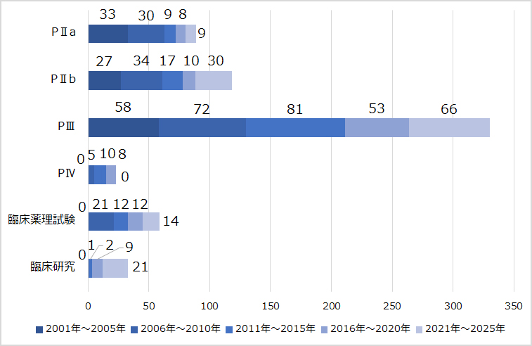 患者対象試験 支援実績(2001年~2025年 実施症例数)