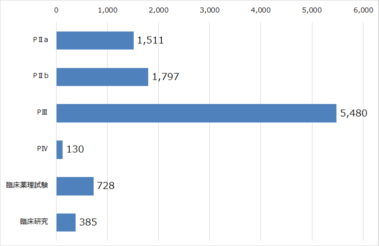 患者を対象とした試験(フェーズ別実施症例数)