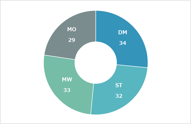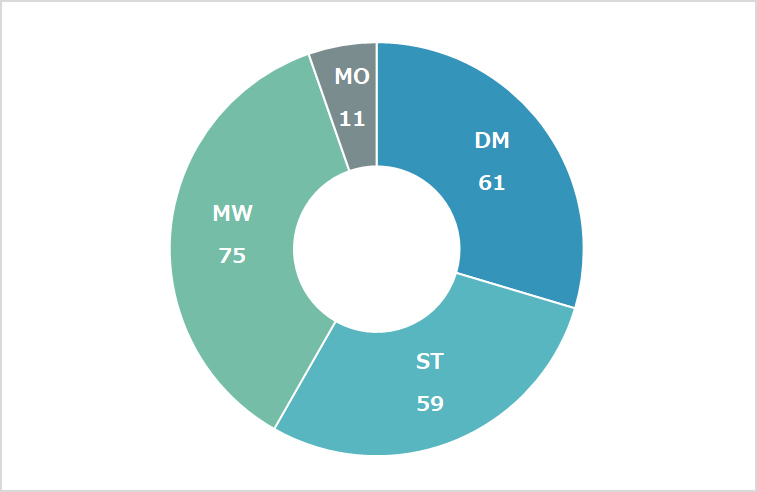 ※MO:モニタリング、DM:データマネジメント、ST:統計解析、MW:メディカルライティング